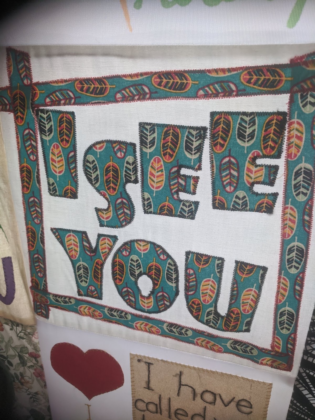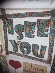 To give some context, as I fear I may have been a little confusing so far… Last year there was a Christian charity campaign called ‘I See You’ by a great charity called Open Doors whose task it is to help persecuted Christians around the world from the relative safety of the West. The campaign was aimed at suffering Christian women and supporters were sent pieces of cloth and asked to embellish them with the words ‘I see you’, both to show suffering female Christians that they were not forgotten and to show the Government in the UK the amount of support there was for those who are tortured and persecuted because of their faith. The cloths were presented to the great and the good, to Parliament, and are now going on display in churches.
